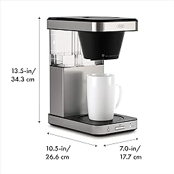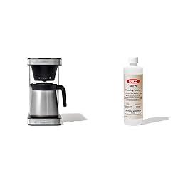 - OXO Brew 8 Cup Coffee Maker, Stainless Steel Whether you're brewing a single mug or a full pot, the OXO Brew 8-Cup Coffee Maker ensures a better-tasting cup—every time. Engineered with BetterBrew™ precision brewing to control water temperature, water volume and brewing time, the 8-Cup Coffee Maker is certified by the Specialty Coffee Association (SCA) for meeting its rigorous home brewing standards. The Rainmaker™ showerhead distributes water evenly over coffee grounds, while the integrated bloom cycle allows for optimal flavor extraction.The double-wall, vacuum-insulated thermal carafe keeps your coffee hot, and the brew-through, pour-through lid means you don't have to fuss with opening the carafe lid before pouring. The drip-free valve even lets you sneak a cup from the carafe without interrupting the brewing process. The sleek, stainless steel Coffee Maker has a space-efficient design that fits under cabinets when not in use. Easily run the convenient cleaning mode to keep the machine in tip-top shape. The Coffee Maker can also brew a single cup of coffee right into your favorite travel mug. You can flip the well cover to elevate shorter mugs or remove it to make space for tall travel mugs. The Coffee Maker comes with an optional single-serve accessory to enhance the flavor of one-mug brewing: Add a filter to the accessory and then place it in the large basket to brew. OXO BREW Descaling Solution - 14 Fluid Ounce Bottle Scale is a naturally occurring buildup of mineral deposits that can affect water temperature and taste quality. Regular descaling can increase the service life of appliances, allowing them to perform faster and with less energy. This solution also acts as a sanitizer, and cleans your appliance while descaling. OXO's Descaling Solution helps keep your coffee makers and kettles working efficiently and using less energy. Our solution is optimized for use with the OXO 12 Cup Coffee Brewing System, 9 Cup Coffee Maker and Cordless Glass Electric Kettle.
