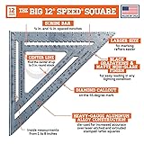 - The original Swanson Speed Square has been an indispensable tool for tradesmen since 1925 and is designed and manufactured specifically to incorporate features of framing squares, tri, miter, and protractor squares. In this collection of three squares, you get the best options for any project. The Speed Square and Big 12 Speed Square and Speed Trim Square are all proudly made in America, forged from aluminum alloy. Each has practical, functional uses on every job site – and home improvement projects too. These three squares share features that are used by every tradesperson: common rafter and hip/valley rafter scales that permit one-number references for all cuts. The square is merely rotated to the proper roof pitch value on either scale to assure the correct angle cut. The slot along the scales will accommodate an adjustable locking pin for repetitive cuts using any 1/4-inch bolt and nut. The Big 12 and Trim Square include additional features that make this unique set of three Swanson Speed Square an indispensable part of every tool collection.