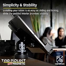 • Experience the ultimate in tablet mounting convenience with the Mob Armor Tabnetic Maxx Universal Magnetic Tablet Mount. This versatile solution effortlessly attaches to any metal surface, granting you the freedom to use your tablet in various locations while achieving the perfect viewing angle, thanks to its adjustable ball housing. Catering to most 7" to 13" tablets, with or without cases, this mount's single adjustable design offers easy customization, allowing you to tilt up to 180° and rotate a full 360° for optimal viewing angles. With a robust 290 Lb pull force magnet, your tablet stays securely in place. Crafted from durable steel, powder-coated for longevity, and featuring high-density closed-cell EVA foam and 18-8 stainless steel hardware, this mount is built to withstand countless adventures and viewing sessions. Plus, its Neodymium rare-earth magnetic base ensures a strong grip on any ferrous metal surface. With three strategically positioned clamps for a secure tablet hold, the Tabnetic Maxx Direct guarantees your device remains firmly in place, giving you the confidence to use your tablet wherever you go. Mob Armor's vision and commitment drive them to empower individuals to achieve their goals with products that exceed expectations in design and performance. Envisioning a world where Mob Armor hardware enables the safe and transformative use of mobile technology in unimaginable ways, their dedication to innovation and manufacturing ensures that their products perform flawlessly even in the most extreme environments. Choose the Tabnetic Maxx, your reliable companion for tablet mounting excellence.