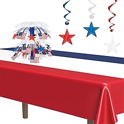 100% Plastic PATRIOTIC PARTY DECORATIONS: Celebrate the patriotic holidays with these striped plastic table covers and party decor. The USA flag design of red, white, and blue adds to your gathering or party. VERSATILE TABLE COVERS: Place these plastic table cloths over a table or on the wall to create a fun photo backdrop. These table decorations are perfect for picnic tables, dining tables, or outdoor patio tables. FITS STANDARD TABLES: These striped tablecovers come with two pieces and each measure 54 inches long by 108 inches wide to fit standard rectangular tables. Made of plastic for an easy disposable tablecloth and clean up. GREAT FOR THEMED PARTIES: Decorate your home or event space for the fourth of July, Memorial Day, patriotic celebration, French decorations, picnics, birthday bash, and other themed gatherings. JOIN THE CELEBRATION: Elevate every occasion and milestone with our premium party supplies. Our vibrant decorations and favors promise durability and style, ensuring unforgettable moments for all life events.