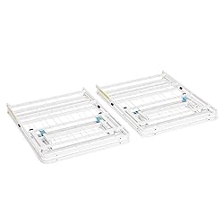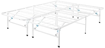 DURABLE CONSTRUCTION: This queen size platform bed frame is crafted from sturdy steel with a sleek white finish that does not require a box spring and supports sleepers up to 700 pounds (350 pounds per person max for all sizes) TOOL-FREE SETUP: The folding mechanism makes the bed frame easy to store in tight spaces NOISE-FREE: Platform bed frame offers a quiet, noise-free, supportive foundation for a mattress SPACE-SAVING DESIGN: With a vertical clearance of about 13 inches, this bed frame queen size provides valuable under-the-bed storage space TRUSTED AMAZON BRAND: As part of the Amazon Basics collection, this metal platform bed frame queen combines reliability and functionality
