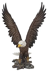 • This Large Eagle with its wings out makes for a majestic addition to any setting, including as a statement piece. The stunning craftsmanship is present in every realistic detail and feature. Add this striking statue to your garden, deck, lawn, home, office, or any other space. Made of polyresin, this can be used indoors and outdoors.
