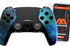 MODDEDZONE Handcrafted in USA Custom MODDED Wireless Controller for PS5 and PC - With Unique Smart Mods, Best For FPS Games - Gamepad for PlayStation 5 with Unique Design - Blue Nebula