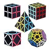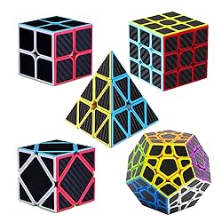 Roxenda Speed Cube Set, [5 Pack] Magic Cube Bundle of 2x2 3x3 Skew Megaminx Cube and Pyramid Cube Smoothly Speed Cubes Collection for Kids Teens & Adults (Carbon Fiber)
