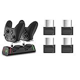 Wide Compatibility - This charging dock can be used for p5 dualsense controllers, xb series s/x controller, Switch Pro controller, google controller, Xox Elite 2 controller. Please use 5V 2A wall adapter to charge it and it will be faster (wall adapter is not included). Clear LED Indicator - This charger dock has the red and green LED indicator on the front. Red is charging, green is fully charged. It is very convenient. Removable Type C Adapter - The USB Type C adapter can charge the controllers more convenient and faster, which is easy to be inserted in or pulled out from controller and it will protect your controllers from scratches. You can keep the usb c adapter into the controller and it will be more convenient for you to charge next time. USB Type-C DONGLE REPLACEMENT: Compatible with multiple models of charging stations with a Type-C connector. Compatible with PS DualSense/X-box Wireless/X-b Elite Series 2/Switch Pro/Google Stadia control, etc. Simple and convenient to use: The detachable USB Type-C adapter can be used after plugging into the controller, and there is no need to pull it out when using it after plugging in, which can well prevent scratches on the controller interface
