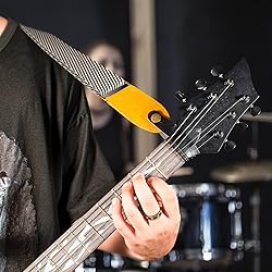 - This is a must-have guitar accessory to connect your guitar strap safely and securely to your guitar, you might prefer not to modify your cherished acoustic or irreplaceable vintage guitar by screwing a strap button into the neck heel. For this, we offer you this Strap Button. This wonderful device allows you to fasten your strap to the guitar up at the nut. Take the guitar strap adapter end and wrap it around the headstock, beneath the strings, and then over the guitar strap adapter button to secure the guitar strap. See the images for proper placement. Simple! Package included: 3pcs brown and 3pcs black Width: 0.9inch, length: 7.9inch, thickness: 1.4mm