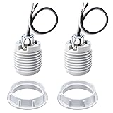 - E26 Ceramic Light Bulb Socket, Standard Medium Base Screw-in Lamp Holder with White Shade Ring, UL Listed Porcelain Pre-Wired Lead 6 Inches replacement for E26 Halogen Bulb, 2 Packs