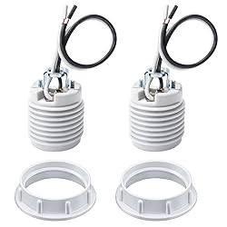 Safety: UL-listed and fireproof porcelain material make it safe to use, no flame hazard, anti-burning, preventing fire-hazard accidents. Parameter: 2-pack E26 medium base light socket, pre-wired with 6 inches (15cm) standard 18 AWG insulated wire. Lampshade ring - Inside diameter: 1-1/2" (39mm); outside diameter: 2" (51mm). Maximum wattage 660W, 0-250V Voltage, meeting your lighting needs in various circumstances. Material: Light socket made of high-quality ceramic, lamp holder ring made of aluminum, both durable and long-lasting. Heat resistance up to 230℃ (Wire: 105℃). Wide Applications: Standard base fit for any E26 base led light bulbs. Ideal for ceiling fans, chandeliers, wall sconces, etc. A perfect replacement for broken sockets. Easy to install: installation will be done within seconds. Warranty: DiCUNO provides a 3-month refund and 1-year warranty service for our customers. If you have any questions about our products, please feel free to contact us; we are glad to help you solve any problem.
