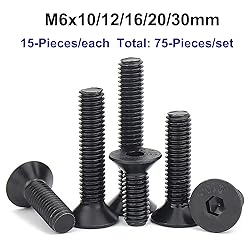 - 【SPECIFICATION】: Screw Head Style: Flat/CounterSunk ; Screw Drive Style: Internal Hex drives, Known as Hex Socket drives , Hex Size 4.0 mm Thread Diameter: 6 mm Thread Pitch: 1.0 mm Head Diameter: 12.0 mm Head Height :2.5 mm Screw Length 8 mm, 12 mm, 16 mm, 20 mm, 30 mm High Quality Material 10.9 Grade Alloy Steel Widely used in various precision machinery industries, classified instruments, meters, electronic products, household appliances, communication products, automobiles, locks, lamps, toys and so on. 【PACKING LIST】: M6 x 10mm means: Metric screws, Thread diameter size 6 mm, Thread length 10mm M6 x 10mm (15PCS) M6 x 12mm (15PCS) M6 x 16mm (15PCS) M6 x 20mm (15PCS) M6 x 30mm (15PCS) 4.0mm Hex Wrench Total: 76PCS