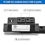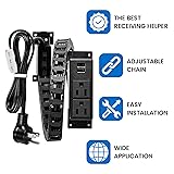 THE BEST RECEIVING HELPER: No one doesn’t like the tidy and orderly desktop. The In-Drawer Outlet is totally necessary for storage SOCKET CONFIGURATION: We have two 15 AMP AC sockets and two USB-A ports, the socket has UL certification, which is convenient for you to charge for a hair dryer, curly, mobile phone, mobile phone, etc ADJUSTABLE CHAIN: Our chain can retractable and regulates to meet the length required by your drawer, and protect the power line from being worn EASY INSTALLATION: You need to leave a 2 -inch space behind the drawer box. Our product installation steps are simple and easy to operate. You don't need to worry about the problem of hands -on ability WIDE APPLICATION: Our products are suitable for any kitchen, bathroom, dressing table, entrance table, bedside table or office drawer, you don’t need to worry about the problem of not finding the power socket