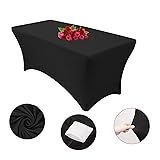 10FT Spandex Black Tablecloth for Rectangle Tables - Stretch Table Cover for Standard Folding Tables, Elastic Table Cover for Christmas