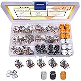 Taiss 2Pcs Guitar Knobs, Potentiometer Knobs Black Aluminum 25 mmx15 mm 6.4mm / 0.25" Rotary Control knob + 60PCS Potentiometer Kit B5K 10K 20K 50K 100K Ohm