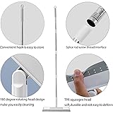 - Product Description Floor squeegee: Perfect cleaning companion for all types of hard floors such as laminate, tile, hardwood, etc. Especially designed for patios, decks, walkways, etc. 180 ° Rotating Head: 180° rotating head, can easily reach the bottom of the sofa, wardrobe, etc. Bathroom: After taking a shower, scrape swipe easily to remove water stains and foam from the bathroom. Window: Not only used as a floor squeegee, but also used as a window squeegee at the same time. Kitchen: After cooking, you can also use it to remove dirt in the kitchen. All Kinds of Hair: Magic Broom effectively remove shed hair, and it will not be as difficult to remove the hair as it is wrapped around the broom. Clean Immediately After Rinsing: Water squeegee after removing water, it will not absorb water and keep the blade dry. After sweeping, just rinse with water to clean. Multi-Surface: Silicone Broom great for windows, patios, walkways, hardwood, tile, laminate, ceramic, etc. floors. Easy to Install: Window squeegee only simple steps are required to complete the installation.The four-section pole can be assembled according to your height. Notes: Please allow 1-3cm difference due to manual measurement. Due to different monitors and different lighting, window scraping the pictures may not reflect the actual color of the item. Thanks for your understanding.