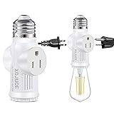 【3-Prong Socket Adapter】 The light bulb socket can be applied to 2 /3 pin(TypeA/B) outlet and 1 bulb socket, a wider range of applications. 【High Quality and safe】The light sockets are made of flame retardant PBT material, heat resistant and long lasting, this outdoor light with outlet attached with US standard. 【Electrical Ratings】E26/E27 socket outlet adapter voltage range: 0-125VAC, wattage: 1250W; This light bulb adapter is not suitable for use in wet locations. 【Wide Application】This light socket extender is good for garage, workshop, basement, porch, patio, Halloween Christmas Outdoor Lights, security cameras. 【Easy to Install】Just turn off the light fixture, remove the existing bulb, and simply screw the adapter.If you have any problem or question, please feel free to contact us directly.