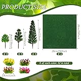 Elaborate Combination Design: our package includes 36 model flowers, 15 model trees in 3 different styles, and 4 pieces of about 20 x 20 cm/ 7.87 x 7.87 inches artificial turfs; The combination of flowers and trees is reasonable and delicate, providing you with a wide range of possibilities to create your own miniature scene High Reduction and Reliable: the mini trees are made of sponge powder plastic, and the grass is made of nylon, making them reliable and waterproof, ensuring they can be applied for a long time; Each part is designed to be as realistic as possible, with a light texture that is easy to match and can be applied multiple times Easy to Assemble and Move: each piece of model scenery supplies is light and portable, making them easy to assemble and move; You can use glue or tape to hold them in place as you wish; The model turfs and flowers can be placed on a flat surface, while the model trees can be placed on clay Fun Parenting Games: with these miniatures flowers for crafts, you can build your own garden together with your child, improving their manipulative ability while also promoting your relationship; It's a fun and creative way to spend time together and create something beautiful; They can also be applied for sand play games like commercial sand play games, military play games, and other subjects Widely Applied: these are good for DIY miniature scene, sand play game and so on