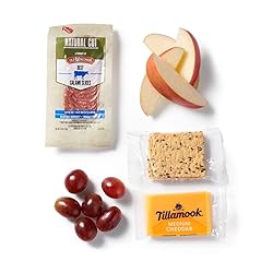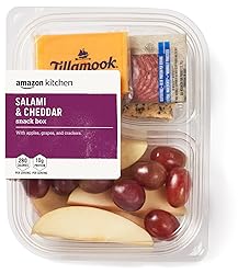 On-the-go snack box with salami slices, Tillamook cheddar, apples, grapes and flax seed crackers 10g protein, 280 calories Pause & Recharge Perfect between meals when you need a little pick-me-up Brought to you by Amazon Kitchen, grab-and-enjoy meal solutions, prepped for what’s next
