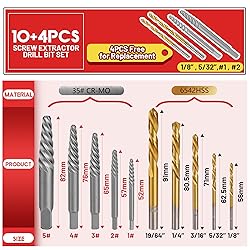 - 14 Pieces Screw Extractor Set Material: Made of impact-resistant 6542/4341 HSS steel material which increases durability and service life. With a solid storage case, you can take it to any corner of the world, and against lost screw extractors. Broken bolt extractor kit are used to remove stuck, broken or screwed tools. Easily removes damaged screws, studs, bolts and other accessories. Made of impact-resistant 6542/4341 HSS steel material which increases durability and service life. With a solid storage case, you can take it to any corner of the world, and against lost screw extractors. Broken bolt extractor kit are used to remove stuck, broken or screwed tools. Easily removes damaged screws, studs, bolts and other accessories.