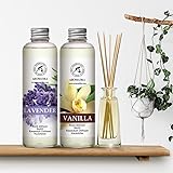 Lavender Reed Diffuser Refill & Vanille Refill Diffuser - 2 x 6.8 Fl Oz - Fresh & Long Lasting Fragrance - Reed Diffuser Oil Refill for Aromatherapy - Home - Office - Restaurant - Bath - Office