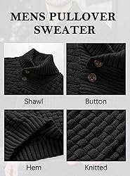 Arcciit Mens Casual Pullover Fall Winter Turtleneck Cable Knit v Neck Fisherman Waffle Sweater