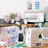 • New brothread – QUILT AND EMBROIDER YOUR LIFE! After continuous research, development and test, New brothread embroidery machine thread kits with clear storage box is now released. Not only for easily organize the thread spools, but also be convenient for customers to take their thread outside for embroidery classes or other quilting activities. ★ 1, Include 8 spools of embroidery machine thread. Each spool is 40wt and 1000m (1100yd) length. ★ 2, Stored with high quality clear plastic box, you can identify the thread colors and color numbers from outside. ★ 3, A specially designed notch on the spool base for keeping the thread tails from unraveling. ★ 4, Hold up colors very well even when subjected to commercial laundering, bleaching and other harsh chemicals. ★ 5, Elasticity and Tenacity of polyester reduces risks of breaking, fraying, looping and puckering. ★ 6, The storage box can be used for storing other sewing accessories and items.