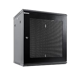 - This RackPath 12U performance wall mount network server cabinet is designed to provide temperature-controlled accommodation for your 19’’ standard rack-mount servers and network equipment in retail locations, classrooms, back offices, network closets and other locations while valuable space is limited. Built in fan and flow-through ventilation help to keep your equipment from overheating. Constructed from heavy duty cold rolled steel with a durable black electro-static powder coated finish, this cabinet has a maximum weight capacity of 110lbs(50kg). The tempered glass door and removable side panels securely help to prevent damage or theft and allow access for easy servicing. Removable top and bottom cable management panels offer easy cable routing. Adjustable rails, silk-screened rack unit measurements and square rack holes allow for easy installation of equipment. The cabinet comes flat packed and requires some assembly. The RackPath cabinet is compliant with: CE, EIA/ECA-310-E, RoHS