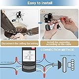 【Universal Ceiling Fan Remote Control and Receiver Kit 】 This universal ceiling fan remote control kit works most major 3-speed AC ceiling fans, including Hampton Bay, Hunter, Home Decorators Collection, Honeywell and other brands. Suitable for upgrade AC ceiling fans.NOTE: If you have a wall switch, you need to keep the wall switch on at maximum speed for the receiver to work all the time. 【Ceiling Fan Remote Control with Light Dimmer 】3 speeds (HIGH/MID/LOW) and off can be controlled for the fan. Long press the light button to adjust the light. The dimmer works well with some dimmable CFL/LED lamps and all incandescent lamps. Most LED/CFL lamps are not dimmable and the remote control can only control the on/off function. (The remote does not have a reverse button, but supports ceiling fans with reverse function) 【Durable Ceiling Fan Receiver】This ceiling fan replacement part has a durable and powerful receiver that allows you to operate your ceiling fan from up to 60 feet. Equipped with 2 upgraded relays, the new component's dimming capabilities far exceed those of thyristors. The receiver is rated at 240W, which greatly increases the carrying power capacity, allowing you to access more bulbs while being safer and more compact. 【 Easy to Set 】The remote control and receiver have matching DIP switches, and the DIP dip code needs to be adjusted consistently when setting. The receiver can be connected according to the color of the wire or the corresponding code. If you have a pull chain switch, please use the pull chain switch to set the air speed to maximum and turn the fan light on before using. Only then can the pull chain switch and wireless remote control be used together. 【 Packing List 】The ceiling fan remote control replacement includes a remote control*1, receiver*1, wall mount bracket*1, user guide*1, wire nuts*6, screws*2, and drywall anchors*2. Easy to attach the bracket to the wall to store the remote control. The remote control uses a 9V battery (not included).