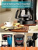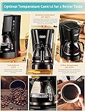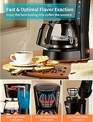COMPACT SIZE - Space-saving 5cups (1 cup = 5 oz) coffee machine with visible 750ml large capacity tank, perfect for home and Office use. EASY OPERATION - Just press the ON/OFF switch to brew and enjoy flavorful coffee in minutes. ON/OFF indicator light lets you know when your coffee maker is on or off. KEEP WARM - Stain-resistant warming plate keeps coffee warm until you turn it off, ensuring every cup you drink is hot coffee. PERMANENT CONE - SHAPED FILTER -Using our Permanent Coneshaped Filter may allow some fine coffee grounds to fall into and appear as sediment in the carafe. If you mind, please use a piece of filter paper instead. Do not use the Permanent Coneshaped Filter & filter paper together. GRAB-A-CUP AUTO PAUSE - Allows for pouring a cup at any time during the brew cycle, and the coffee will not drip within 30 seconds.e use.