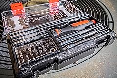 High Torque Ratchet allows for faster driving. Interchangeable S2 Steel Bits. Phillips, Slotted, Hex and Torx. End Cap Bit Storage keeps bits organized and easily accessible. Chrome Plated extensions for superior corrosion resistance. Oil and Solvent Resistant Dual Material Grip.