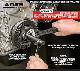 ARES 15086 – Master Harmonic Balancer Install Kit – Install Balancer Pulleys on Domestic and Import Vehicles – Includes Extra Long Installers for Late Model Applications