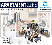 Brick Loot Kitchen & Bath Building Brick Set – Including 288 Pieces of Furniture for Living Room, Kitchen & Bathroom – 100% Compatible with Lego & Major Brands – Ideal for Adults & Kids Age 6+
