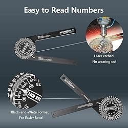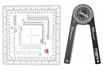 For use with UTM, MGRS, USNG or other metric based coordinate systems. For use on maps with scales of: 1:25000 1:50000 1:100000 1:250000. Compass Rose in both Degrees and Mils. The inner protractor is marked in degrees and the outer protractor is in mils. Life time Warranty. DURABLE MITER SAW PROTRACTOR | This miter angle finder is made of solid machined aluminum with a black anodized finish, and It feels so solid in your hand. Easy to Read Numbers .The markings on miter saw protractor is laser engraved,and white markings on black background are much easier to read, even without bright light WIDE APPLICATION | Very easy to transfer an odd angle from piece to piece, it makes most cutting work much more accurate and reduces hand fitting for making nice clean cuts without guessing at angles and wasting material. Whether you are a professional or not, Smolder miter saw protractor is a "must" for quick angle finds for you, very suitable for crown molding, miter cuts, carpentry, plumbing, metalworking and more
