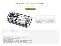 - Overview This is a telecommunication HAT for Raspberry Pi which supports NB-IoT, Cat-M, EDGE, and GPRS, as well as GNSS positioning function. Due to its advantages like small size, low delay, and wide coverage, it is the ideal choice for IoT applications such as intelligent instruments, asset tracking, remote monitoring, e-health, and so on. Features At A Glance With Pi 40PIN GPIO extension header, supports Raspberry Pi series boards Supports TCP, UDP, PPP, HTTP, FTP, MQTT, SMS, Mail, etc. Supports GNSS positioning (GPS, BeiDou, GLONASS, Galileo) Onboard USB interface, to test AT Commands, get GPS positioning data, and so on Breakout UART control pins, to connect compatibly with /STM32 host boards Onboard voltage translator, 3.3V by default, allows to be switched to 5V via 0Ω resistor SIM card slot, compatible with both normal SIM card and NB-IoT specific card 2x LED indicators, easy to monitor the working status Baudrate: 300bps~3686400bps Control via AT commands (3GPP TS 27.007, 27.005, and SIMCOM enhanced AT Commands) Supports SIM application toolkit: SAT Class 3, GSM 11.14 Release 98, USAT With online development resources and manual (examples for Raspberry Pi//STM32) Specifications NB-IOT/CAT-M/2G Band: NB-IoT/Cat-M: FDD-LTE B3/B8/B20/B28; GPRS/EDGE: 900/1800 MHz Data rate: NB-IoT: 34(DL)/66(UL); Cat-M: 300(DL)/375(UL); EDGE: 236.8(DL)/236.8(UL); GPRS: 85.6(DL)/85.6(UL) SIM card support: NB-IoT: NB Specific (Not Included); Cat-M/GPRS/EDGE: Normal SIM (Not Included) Applicable region: Europe, Africa, Australia, Southeast Asia GNSS Satellite systems: GPS, BeiDou, GLONASS, Galileo Receiver type: 16-channel; C/A Code Sensitivity: Tracking: -162 dBm (GPS)/-157 dBm (GLONASS)/TBD (BD); Cold starts: -148 dBm Time-To-First-Fix: Cold starts: <35s; Hot starts: <1s Accuracy: Position: <2.5m CEP