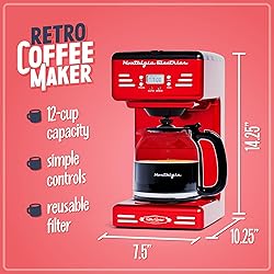 Nostalgia Retro 12-Cup Programmable Coffee Maker With LED Display, Automatic Shut-Off & Keep Warm, Pause-And-Serve Function, Red