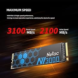 Netac 1TB NVMe PCIe Gen3x4 M.2 Internal Solid State Drive Up to 3,100 MB/s with Aluminum Heatspreader 300TBW, Built for Gaming