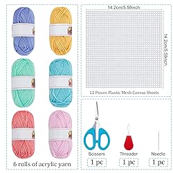 Plastic Canvas Box Kit: Package includes 12pcs 14x14cm plastic canvas mesh sheet, 6 rolls of yarn(1 roll per color), a plastic threader, a big hole needle. Practical Storage Box: A practical and easy-to-make storage box that can be used to store your jewelry, hair accessories and other small items, lovely and durable. Quality Material: The mesh canvas sheets are made of plastic with smooth surface and neat holes, will not scratch your fingers, and easy to thread. Nice Handmade Gift: You can give this kit directly to your friends who like DIY, or you can give it to your family or friends after it's finished. It's a really nice gift for birthday and Christmas. A Relaxing New Hobby: When you're stressed or anxious, it will be a great way to relax, which will keep you focused and forget about your worries for a while. Don't forget to applaud yourself when you're done!