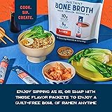 AROMATIC DELICIOUS FLAVOR: This unique product from Bare Bones Broth isn't your typical instant mix. Enjoy the taste and benefits of bone broth in convenient stick packs with Bare Bones Instant Ramen Bone Broth. Made with real chicken bone broth, freshly ground herbs and spices, and more. Experience the deep, rich, savory flavor of real bone broth, crafted with quality ingredients that warm you from the inside out, wherever you are. PREMIUM VALUABLE INGREDIENTS: Enhance your wellness routine at a cost per serving that's perfect for everyday sippers. Bare Bones powder packets contain prebiotic fiber (tapioca), gluten-free soy sauce, shiitake mushroom, ginger, sesame oil for an authentic taste and fresh spices to take traditional taste to the next level. QUALITY YOU CAN TASTE: Bare Bones is committed to providing delicious and convenient bone broth options, crafted with high-quality ingredients. Bare Bones bone broths are crafted for taste and convenience. Made with premium ingredients, our bone broth is gluten-free, soy-free, dairy-free, and contains no artificial flavors or MSG. Suitable for intermittent fasting, low-carb, keto snacks, and paleo diets. SUPER SNACK: Each serving is packed with 10g of protein and only 50 calories, making it a perfect keto, paleo, and intermittent fasting-friendly snack. Our instant bone broth is brimming with collagen, minerals, and amino acids to promote digestive and joint health and improve skin and hair. Perfect for busy professionals on-the-go, health-conscious individuals following diets, athletes seeking a protein boost, or anyone looking for a delicious and nutritious way to stay hydrated. ON-THE-GO BONE BROTH PACKETS: Enjoy the taste and benefits of bone broth anytime, anywhere that you can easily mix with hot water in seconds. Simply mix one packet with hot water and stir for a delicious and nutritious drink with the same taste and consistency as homemade bone broth! Stash in your bag, lunch box, or suitcase for when you need a boost.