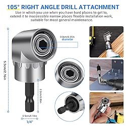- Grednfhat drill extension kit is made of heavy-duty chrome vanadium steel, sufficient quantity and variety, suitable for most general maintenance, robust, and can be used for a long time, provide you with a useful solution for reaching, complete match to meet daily needs. Features: 90° corner right angle attachment, it can rotated to the left and right, max torque: 10n/m. Universal 1/4 IN/6.35 MM hex shank drive can be quickly changed for wrenches, drills and drive chucks Used for contacting, removing and reattaching awkward automotive nuts, bolts and screws. Can to connect a drill, rechargeable drill or manual wrench to extend it to inaccessible narrow places flexible installation work. Can be used with hole saws, socket wrench, nut drivers, electric drills and so on, make it allows access to a narrower. Specification: Material: Steel Color: Black, Silver, Yellow Size: As shown Package Weight: About 0.68 KG/1.51 LB Easily to fold and take anywhere, Save a Ton of Time and Space. Tips: Please allow 1-2 CM/0.39-0.78IN or 0.01-0.03 KG/0.02-0.06LB differs due to manual measurement. Please allow slight color difference due to different monitor. Package 1 X Flexible Drill Extension 1 X 105° Right-Angle Drill Bit 1 X 105° Right Angle Drill Extension 1 X Right Angle Drill 90 Degree Hex Shank Extension Drill Bit 10 In 1 Set Combination Screwdriver Bit Set We have a strong guarantee, you can contact us or E-mail with any questions the use of the product, we will provide the best service for you.