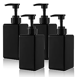 15 oz Hand Soap Dispenser, Plastic Pump Bottles, Refillable Empty Lotion Dispenser Liquid Container for Bathroom Kitchen College Dorm, 4 Pack Black