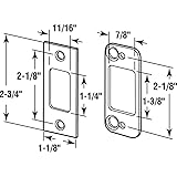 Use with hinged swinging doors constructed of wood, metal and fiberglass This deadbolt strike kit can be used with both swing-in and swing-out doors 1/8 inch thick heavy gauge steel base Stamped steel construction with a matte black finish 3 inch screws provided for fastening base plate All the necessary mounting hardware is included for a quick and easy installation Please refer to the line art drawing for dimensions and compare to your needs before purchasing