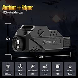 DEFENTAC Pistol Light with Strobe Function for Guns, 600 Lumens Tactical Flashlight for Handguns, High Performance Weapon Light, Magnetic Charging