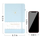 ✒️ HARD BOUND NOTEBOOK - Hardcover notebook journal with durable hard cover and high-quality paper can keep your notes well perfect as travel journal, meeting notebook, teen diary. Let your writing creation more freedom on the ruled journal notebook. Perfect for journals to writing in, or note-taking in college classes or meetings. ✒️ COVERS DESIGN - A5 notebooks for work with gorgeous gold foiling pattern - moon, stars and meteor. Exquisite lined journal is the best decoration for the desk. The journal notebook cover is made of cloth, Elastic banded, Satin ribbon bookmark, Pen loop. ✒️ PREMIUM PAPER - Lined journal notebook with 8mm wide ruled paper. The page layout of small icons makes it more efficient to complete diary or meeting minutes. Non-white paper can protect the eyesight of the writer. The rounded corners design on the paper will not hurt your hands. The sturdy binding of journal, no risk of falling apart. ✒️ LAY FLAT DESIGN FOR WRITING EASE - Let you reading more easy and note-taking efficiency. Elastic closure band of hardcover journal keeps it securely closed. The inner paper from curling and keeping it flat. ✒️ GUARANTEE - You can purchase our hardcover notebook with full confidence that If you don't love it due to any quality issues, we will replace it or give you mony back!