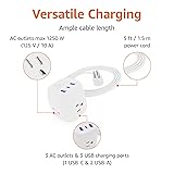 VERSATILE POWER SOLUTION: This power strip with USB ports transforms a single outlet into a multi plug outlet, ideal for home, office, or travel MULTIPLE CHARGING OPTIONS: This plug extension outlet includes three AC outlets, two USB-A, and a USB C power strip, providing flexible charging for your devices HIGH POWER CAPACITY: Featuring three AC outlets supporting up to 1250 watts, this surge protector with USB ports allows efficient and rapid charging SAFETY FIRST DESIGN: This outlet surge protector includes overload, short-circuit, over-current, over-voltage, and overheating protections to secure your devices CONVENIENT EXTENSION CORD: The 5-foot travel extension cord acts as a power outlet extender, offering easy access to power sources in any environment
