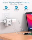Multi Plug Outlet Extender, Power Strip Non Surge Protector Electric Outlet Splitter with 3 USB Wall Charger (1 USB C), Multiple Outlet Expander for Cruise, Dorm, Travel, Home, Office