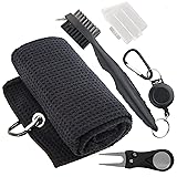 Golf Accessories Kit - Microfiber Waffle Pattern Golf Towel with Clip, Club Brush Groove Cleaner & Clip, Divot Tool with Marker - For Men & Women