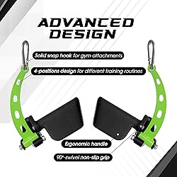 ERGONOMIC DESIGN: Paddle Grips with thick non slip coating offer improved comfort; Also, the adjustable distance and angle design make it possible to accommodate different training routines and exercise needs like lat pull down and rowing COMBINATION OF VARIOUS FITNESS BARS: Our pull down bar attachment has two smooth and secure snap hooks that are multifunctional; They make an easy and quick attachment for various exercise machines and equipment such as long and short bars LOADING CAPACITY OF UP TO 880 POUNDS: It is constructed to endure high weight, which should more variety to your workout; In the end, it is suitable for both gym and home training HIGH QUALITY: Our Paddle Grip is made of sturdy and solid stainless steel; Thus, it’ll function as expected and last a lifetime; These gym accessories are well worth it in terms of reliability, performance SUITABLE FOR MULTIPLE WORKOUTS: Swivel at 90 degrees and four grip positions make this pull up handles fully qualified solution to various training needs; In other words, it facilitates multiple exercises, targeting multiple muscle groups