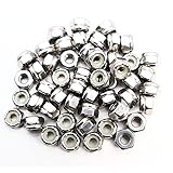 - [DIMENSIONS] Type: locknuts; Material: 18-8 (A2, 304) Stainless Steel, nylon; Size: #10-24; Quantity: 50 pcs. [MATERIAL] 100% Made of high quality 304 stainless steel (also known as 18-8 or A2 stainless steel), they have good corrosion resistance, rust resistance and high hardness, which provides a longer service life, can be used indoor and outdoor, even in humid environment. [FEATURE] With a nylon insert, these lock nuts greatly reduce loosening under vibrations and torque. [APPLICATION] Can be used in machinery, electrical appliances, automobile, shipbuilding and etc. [NOTE] Small parts included, please keep away from children and pets.