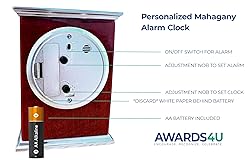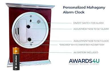 - For the hard-working professional in your life, get them a gift that shows you appreciate their dedication - a personalized mahogany desk clock! This stylish clock comes in a high-gloss finish with silver metal accents, making it a sophisticated addition to any desk or shelf. It's also battery powered by the included AA battery and features an alarm that is easy to set right on the back, making it a functional and practical gift. Plus, the personalized plate! You can have it customized with a special message, making it a truly unique and personal retirement, employee recognition or service award.