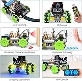 KEYESTUDIO 4WD Smart Car Coding Robot Kit with Microbit V2 for Makecode and Python, DIY Building Robot Kit for STEM Education 15+, IR Remote/APP Control