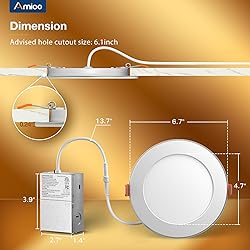 Night light Feature: 6 inch led recessed light in night light mode emits 2000K amber for very soft illumination and added ambiance. It also can provide no-glare lighting when you wake up at night which is very convenient. Synchronization Reset Function: All of our led recessed lighting with night light have synchronization reset function, every time when you turn on the downlight, it will always been downlight mode. Sometimes the lights get out of sync after installation. Please after turning off the light for 10 seconds, turn on again, then the synchronization will be done. 5CCT: Our slim recessed light in downlight mode offers you the option of 2700K, 3000K, 3500K, 4000K, 5000K, 5 color temperature you can choose before install into ceiling, no need to worry about what color temperature to buy, eliminates the hassle of returning or exchange products due to inappropriate color temperature. Trustworthiness: This canless LED recessed light is IC rated, ETL certified and wire terminal is UL-certified. It is permitted to be in contact with insulations in ceilings, meaning the junction box is thermally protected. Amico Benefits: Amico recessed downlights with night light are damp-rated, suitable for installation in bedrooms, living rooms, kitchens, hallways, and even bathrooms.The Amico LED recessed lighting with Night Light is certified by ETL/FCC of a high standard. Our service team is 7/24 online, we will give you a satisfactory solution.