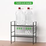 Adjustable & Expandable Design: The shelf length expands from 16.5” to 27.1” to perfectly fit inside cabinets, on countertops, or in pantries of various sizes. The height is also adjustable with different levels to accommodate taller items. Stackable for Custom Storage: Units are fully stackable. Start with one, and easily add more to create a multi-tier storage system that doubles or triples your usable vertical space without permanent installation. Heavy duty & Sturdy Construction: Made of high-quality steel with a durable finish, this shelf can hold over 80 lbs per tier. The load-bearing rods and anti-slip pads on the feet ensure everything stays stable and secure. Easy, Tool-Free Assembly: Everything you need comes in the box. Simply slide the frames to your desired width, adjust the shelf height, and secure with the included thumbscrews. Setup takes just minutes. Versatile Space Saver: The ultimate organizer for cluttered spaces. Ideal for organizing kitchen cabinets (pots, pans, food), the pantry (cans, spices), bathroom shelves, home office supplies, or creating extra storage under the sink.